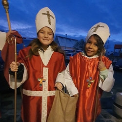 Auch die MINIS halfen mit und boten nach der Feier an den Ausgängen gegen eine freiwillige Spende ihre selbst gebackenen Allerheiligenstriezel an.